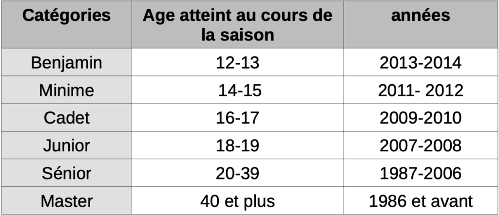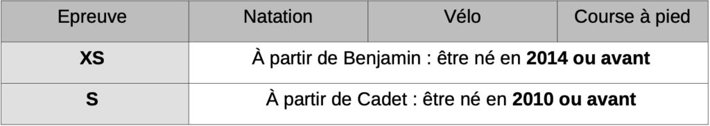 Ages requis / Age minimum par épreuve